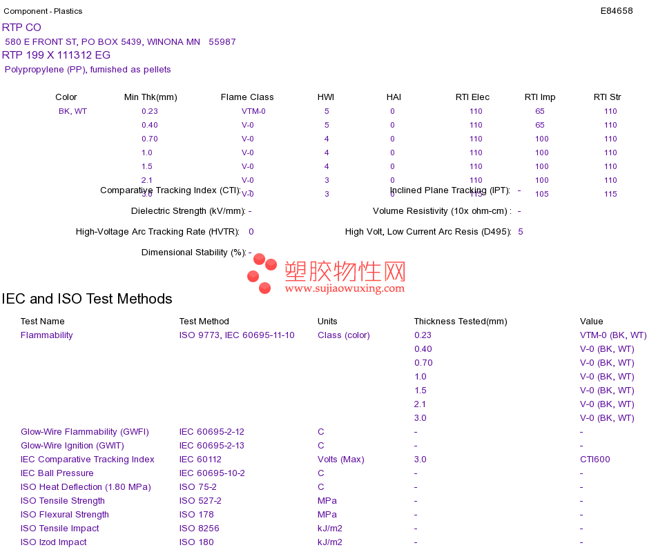 Polypropylene (PP) RTP 199 X 111312 EG UL黄卡