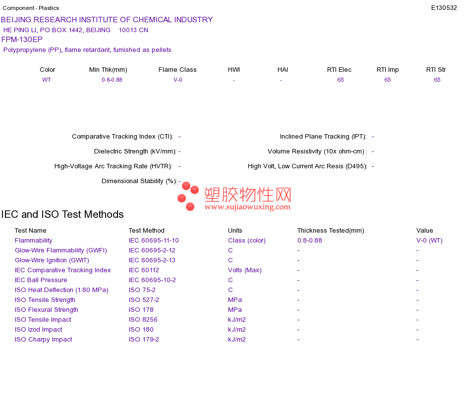 Polypropylene (PP) FPM-130EPUL黄卡资料请登陆会员后查看,如需电子档资料,请联系客服! 赵生:手机13424755533;QQ:27660005