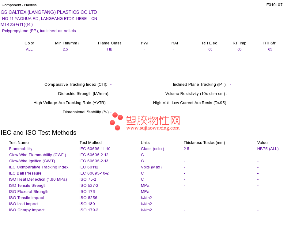 Polypropylene (PP) MT42S+(f1)(f4) UL黄卡