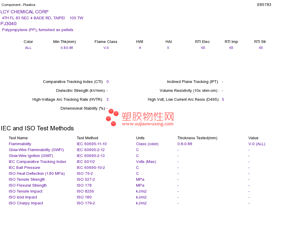 Polypropylene (PP) PJ3040UL黄卡资料请登陆会员后查看,如需电子档资料,请联系客服! 赵生:手机13424755533;QQ:27660005
