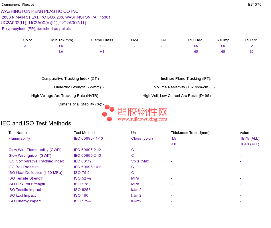 Polypropylene (PP) UC2A002(f1), UC2A00(c)(f1), UC2A007(f1)UL黄卡资料请登陆会员后查看,如需电子档资料,请联系客服! 赵生:手机13424755533;QQ:27660005