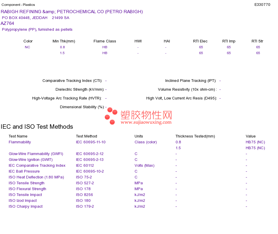 Polypropylene (PP) AZ764UL黄卡资料请登陆会员后查看,如需电子档资料,请联系客服! 赵生:手机13424755533;QQ:27660005