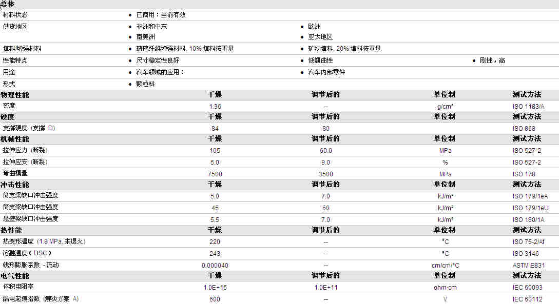 | 弯曲模量 | 7500 | 3500 | MPa | ISO 178 |