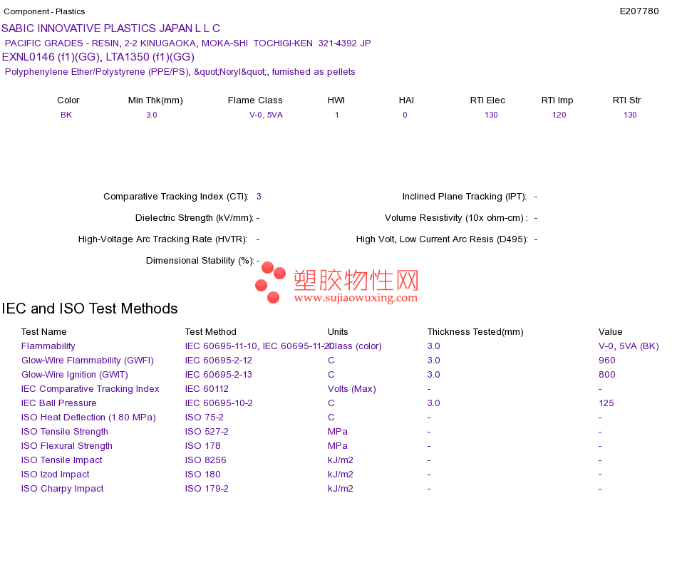 Polyphenylene Ether/Polystyrene (PPE/PS) EXNL0146 (f1)(GG), LTA1350 (f1)(GG)UL黄卡资料请登陆会员后查看,如需电子档资料,请联系客服! 赵生:手机13424755533;QQ:27660005