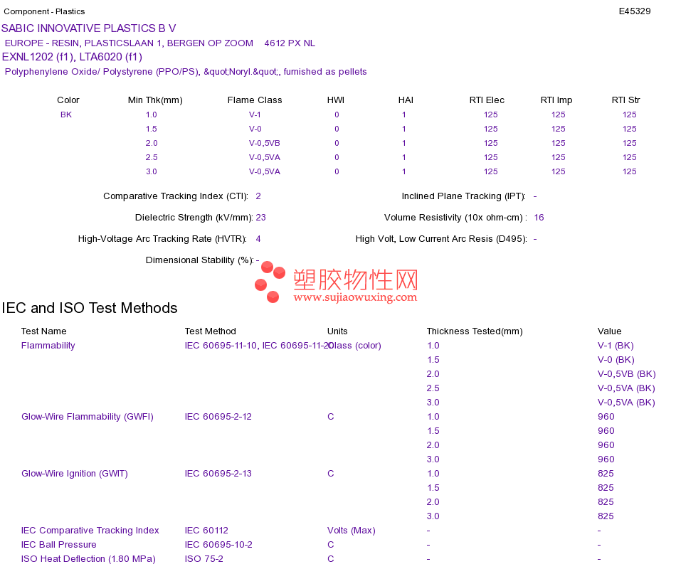 Polyphenylene Oxide/ Polystyrene (PPO/PS) EXNL1202 (f1), LTA6020 (f1)UL黄卡资料请登陆会员后查看,如需电子档资料,请联系客服! 赵生:手机13424755533;QQ:27660005