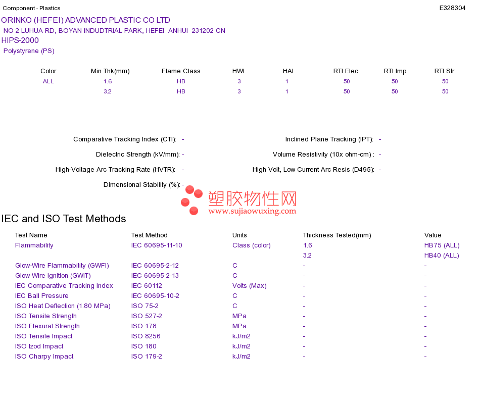 Polystyrene (PS) HIPS-2000UL黄卡资料请登陆会员后查看,如需电子档资料,请联系客服! 赵生:手机13424755533;QQ:27660005