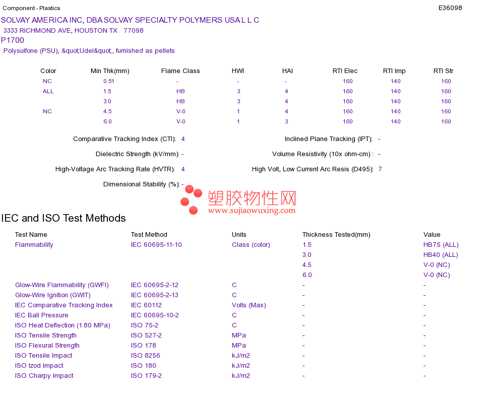 Polysulfone (PSU) P1700UL黄卡资料请登陆会员后查看,如需电子档资料,请联系客服! 赵生:手机13424755533;QQ:27660005