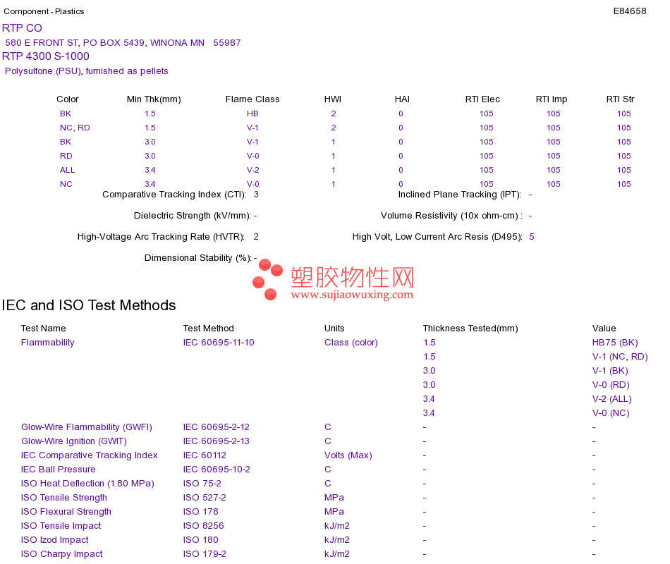 Polysulfone (PSU) RTP 4300 S-1000 UL黄卡