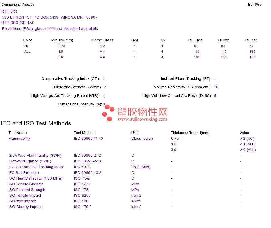 Polysulfone (PSU) RTP 900 GF-130UL黄卡资料请登陆会员后查看,如需电子档资料,请联系客服! 赵生:手机13424755533;QQ:27660005