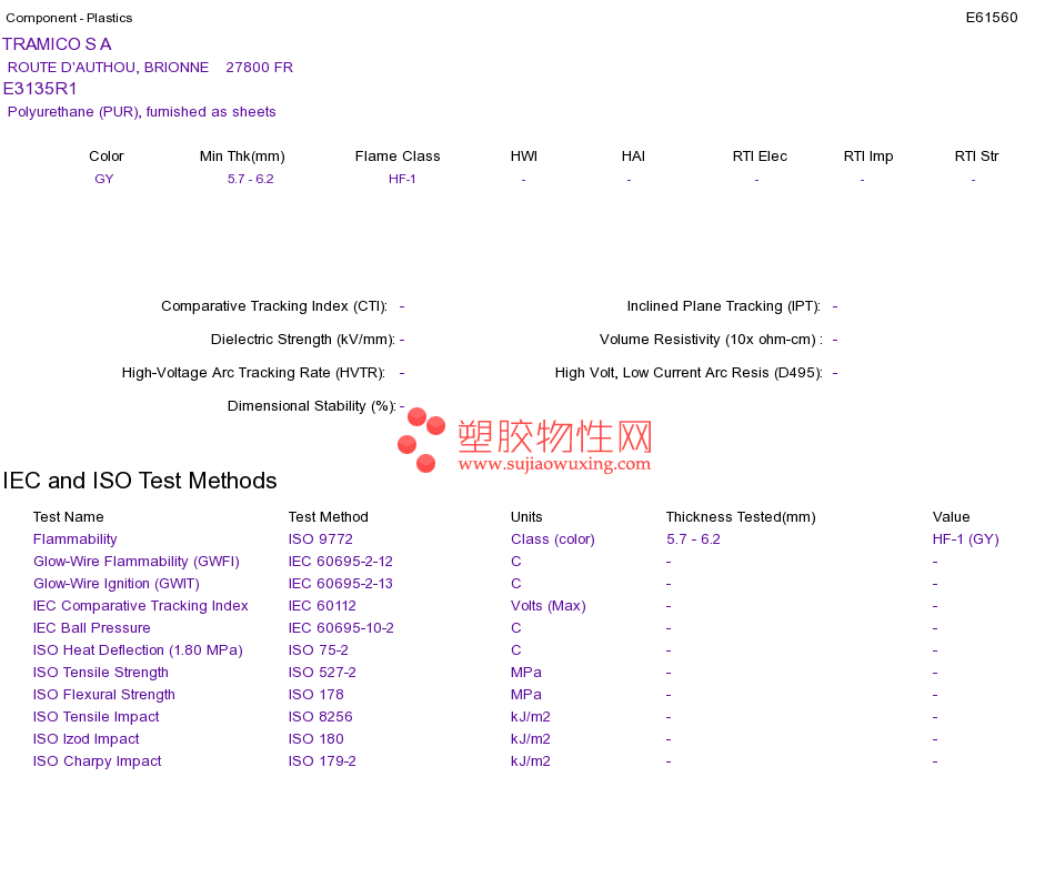 Polyurethane (PUR) E3135R1UL黄卡资料请登陆会员后查看,如需电子档资料,请联系客服! 赵生:手机13424755533;QQ:27660005