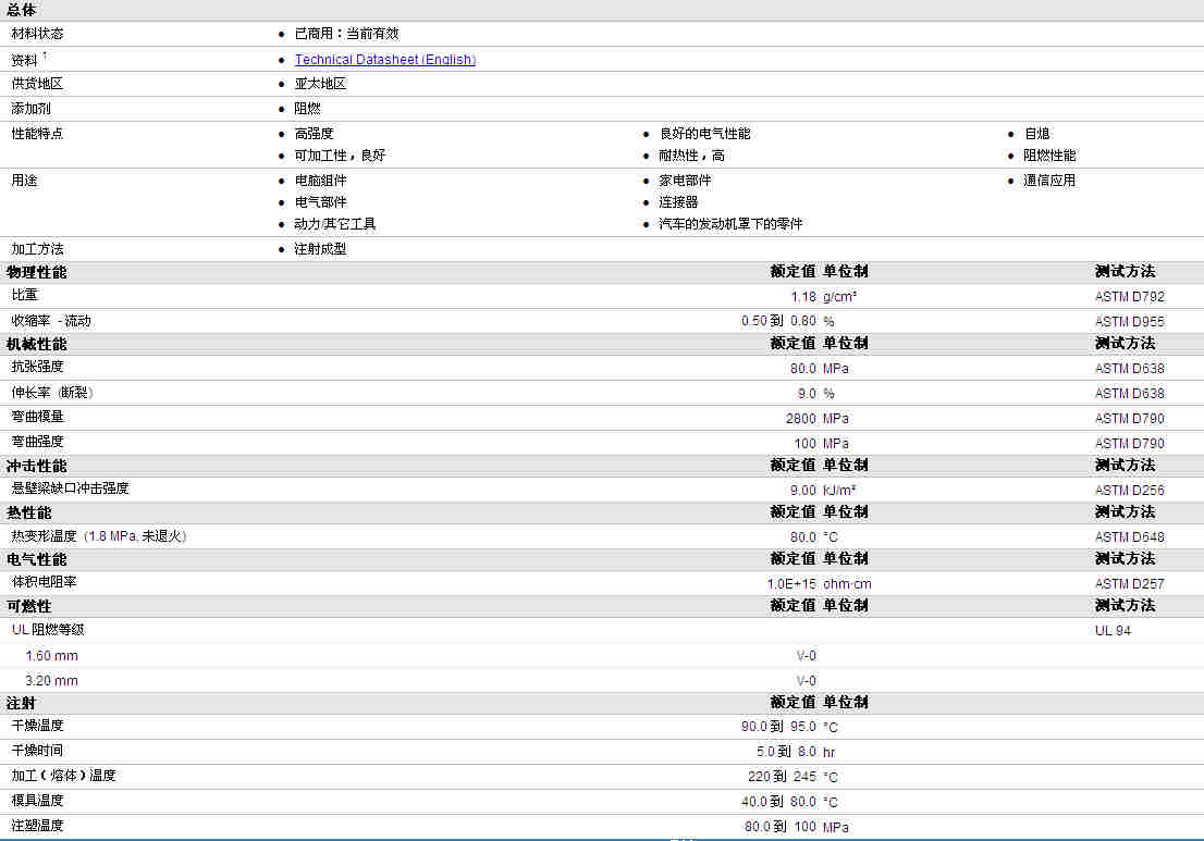 | 机械性能 | 额定值 | 单位制 | 测试方法 |