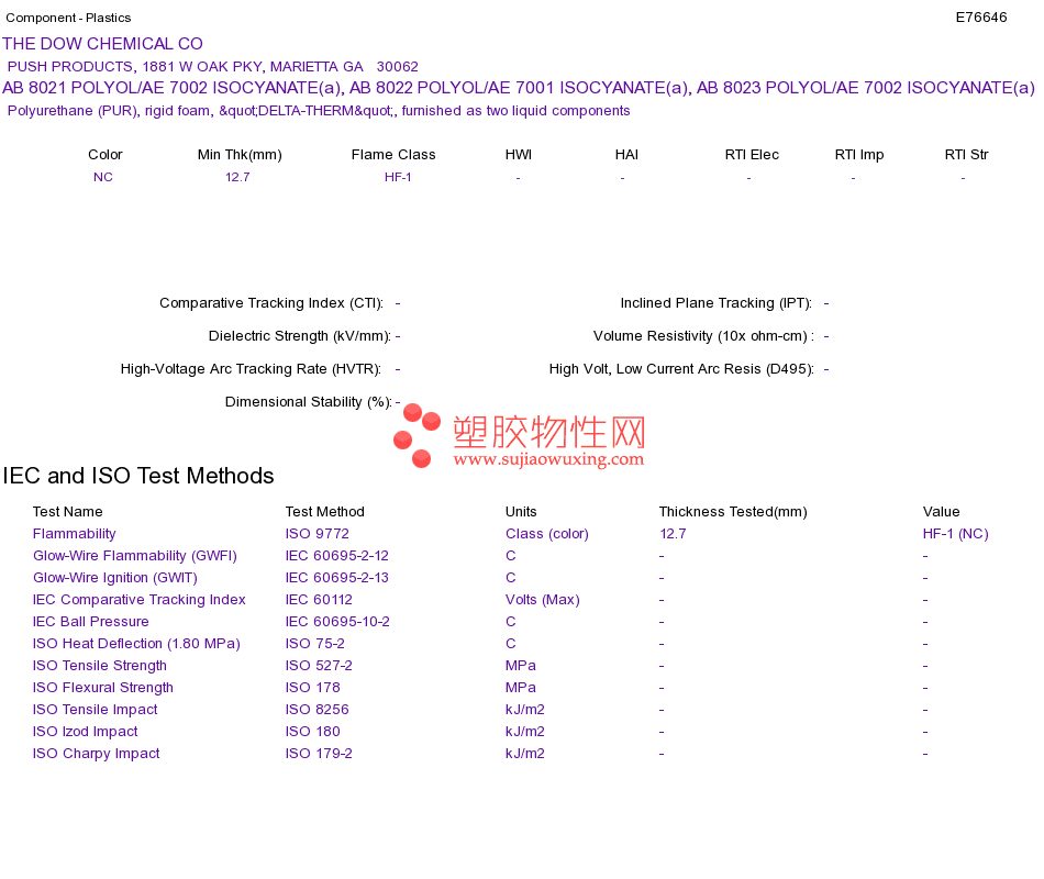 Polyurethane (PUR) AB 8021 POLYOL/AE 7002 ISOCYANATE(a), AB 8022 POLYOL/AE 7001 ISOCYANATE(a), AB 8023 POLYOL/AE 7002 ISOCYANATE(a)UL黄卡资料请登陆会员后查看,如需电子档资料,请联系客服! 赵生:手机13424755533;QQ:27660005