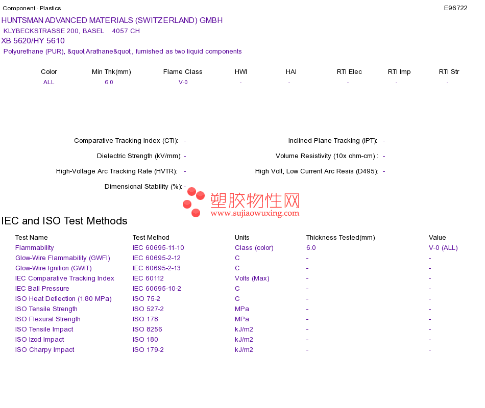 Polyurethane (PUR) XB 5620/HY 5610UL黄卡资料请登陆会员后查看,如需电子档资料,请联系客服! 赵生:手机13424755533;QQ:27660005