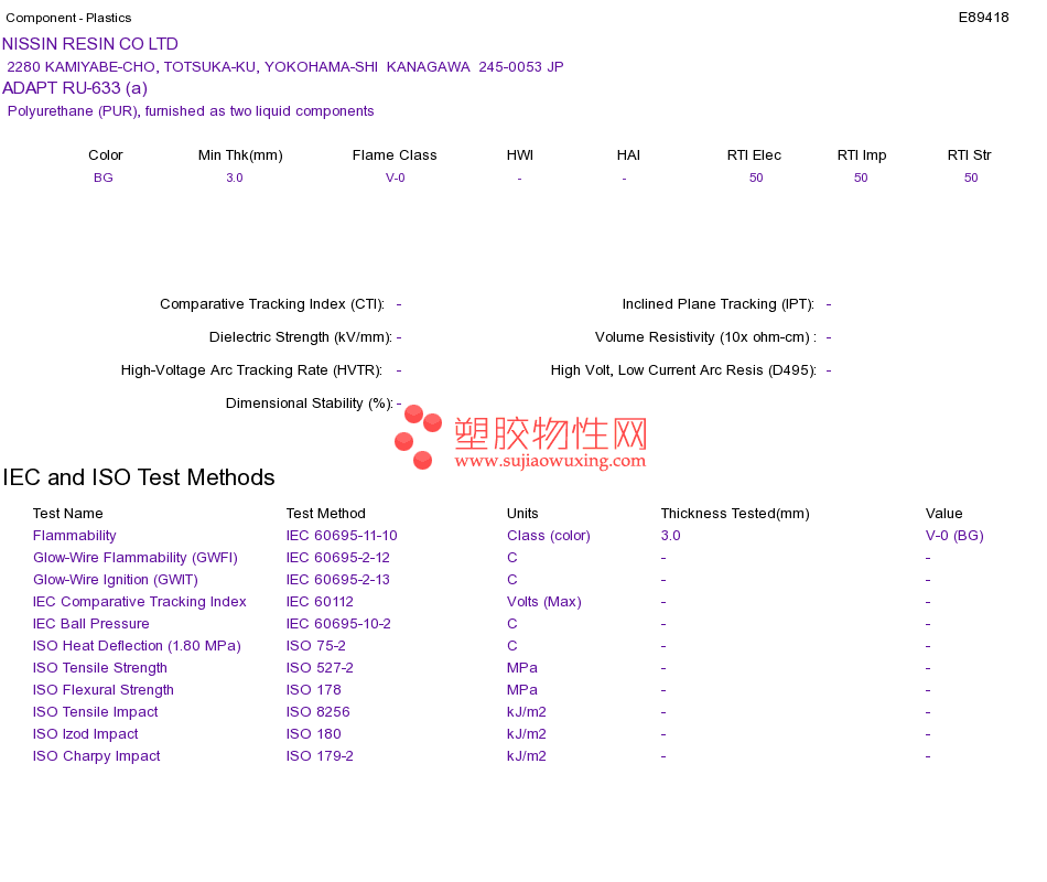 Polyurethane (PUR) ADAPT RU-633 (a)UL黄卡资料请登陆会员后查看,如需电子档资料,请联系客服! 赵生:手机13424755533;QQ:27660005