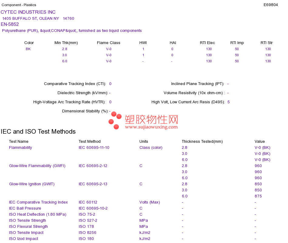 Polyurethane (PUR) EN-5852UL黄卡资料请登陆会员后查看,如需电子档资料,请联系客服! 赵生:手机13424755533;QQ:27660005
