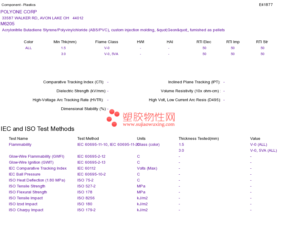 Acrylonitrile Butadiene Styrene/Polyvinylchloride (ABS/PVC) M6205UL黄卡资料请登陆会员后查看,如需电子档资料,请联系客服! 赵生:手机13424755533;QQ:27660005