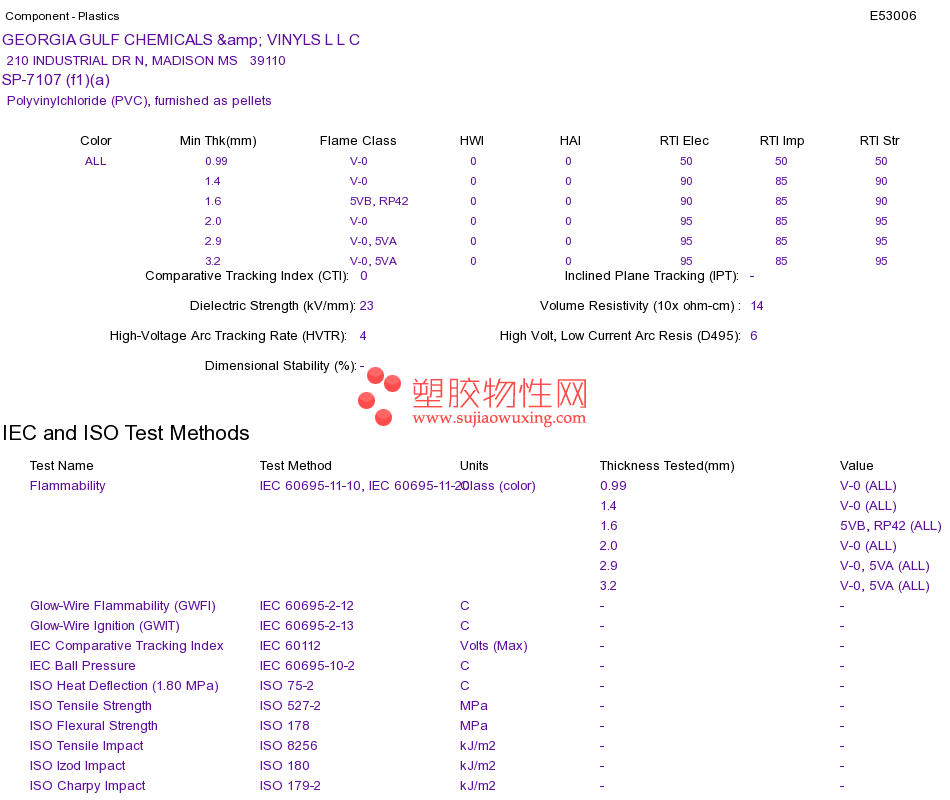 Polyvinylchloride (PVC) SP-7107 (f1)(a)UL黄卡资料请登陆会员后查看,如需电子档资料,请联系客服! 赵生:手机13424755533;QQ:27660005