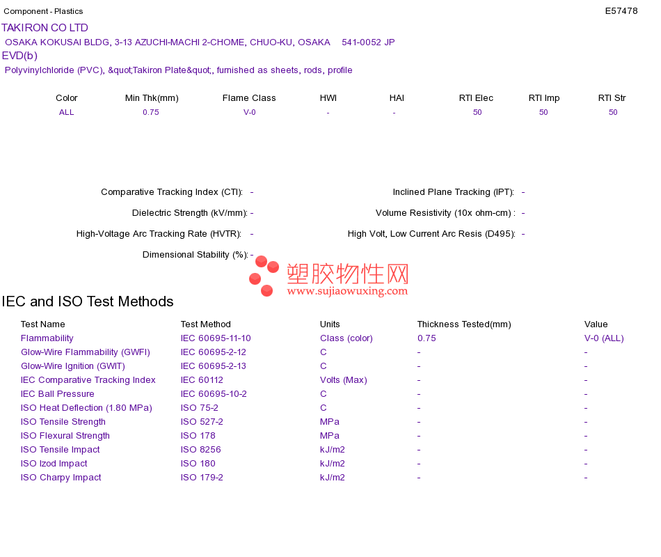 Polyvinylchloride (PVC) EVD(b)UL黄卡资料请登陆会员后查看,如需电子档资料,请联系客服! 赵生:手机13424755533;QQ:27660005