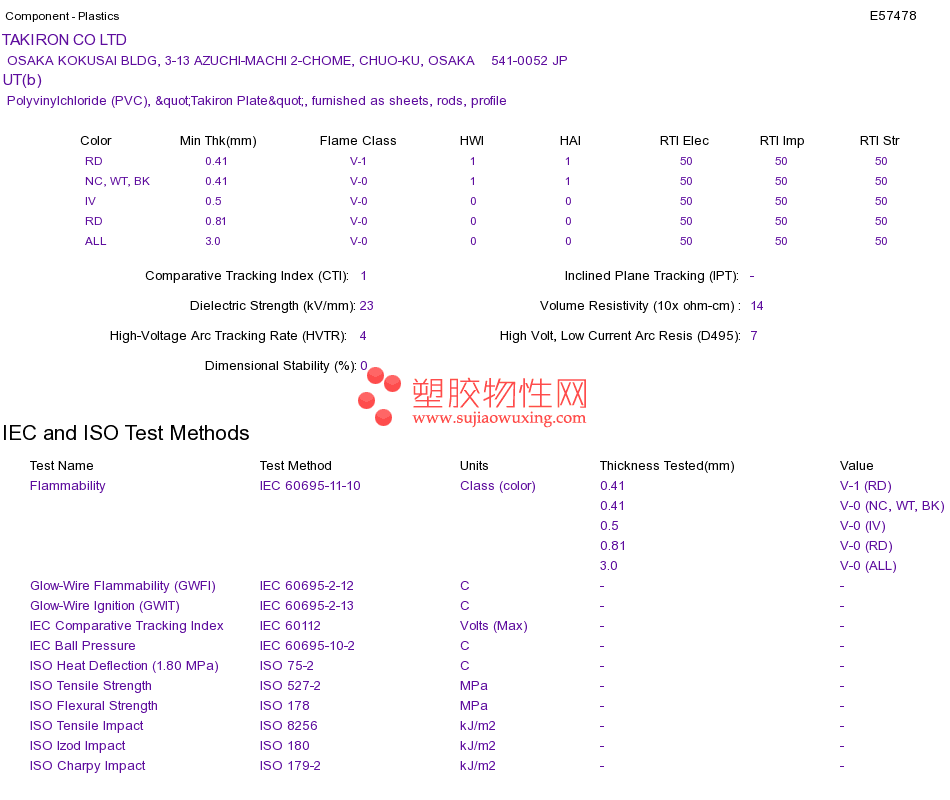 Polyvinylchloride (PVC) UT(b)UL黄卡资料请登陆会员后查看,如需电子档资料,请联系客服! 赵生:手机13424755533;QQ:27660005