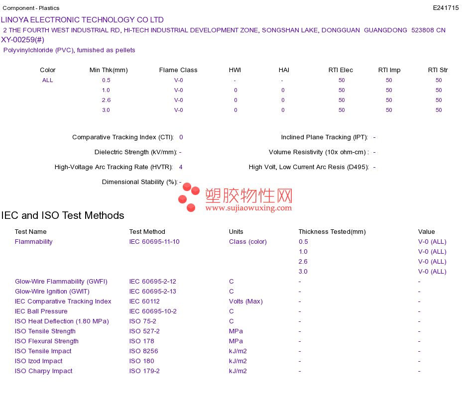 Polyvinylchloride (PVC) XY-00259(#)UL黄卡资料请登陆会员后查看,如需电子档资料,请联系客服! 赵生:手机13424755533;QQ:27660005