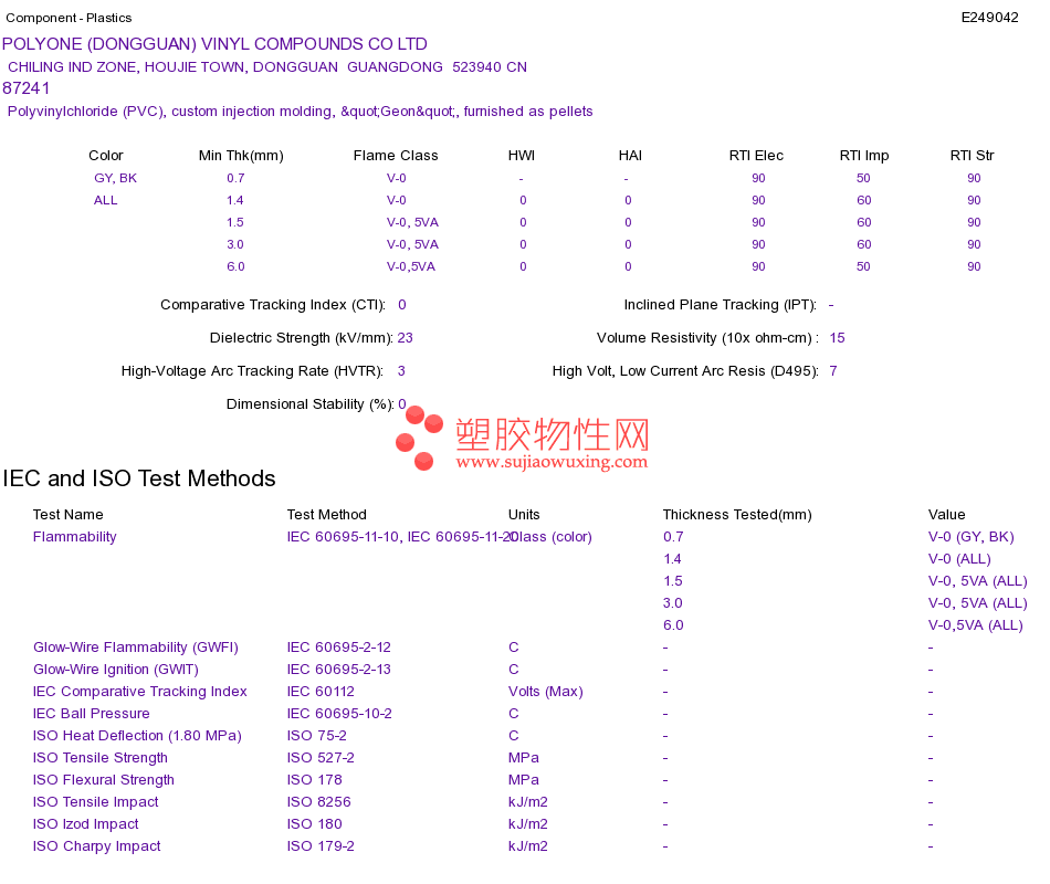 Polyvinylchloride (PVC) 87241UL黄卡资料请登陆会员后查看,如需电子档资料,请联系客服! 赵生:手机13424755533;QQ:27660005