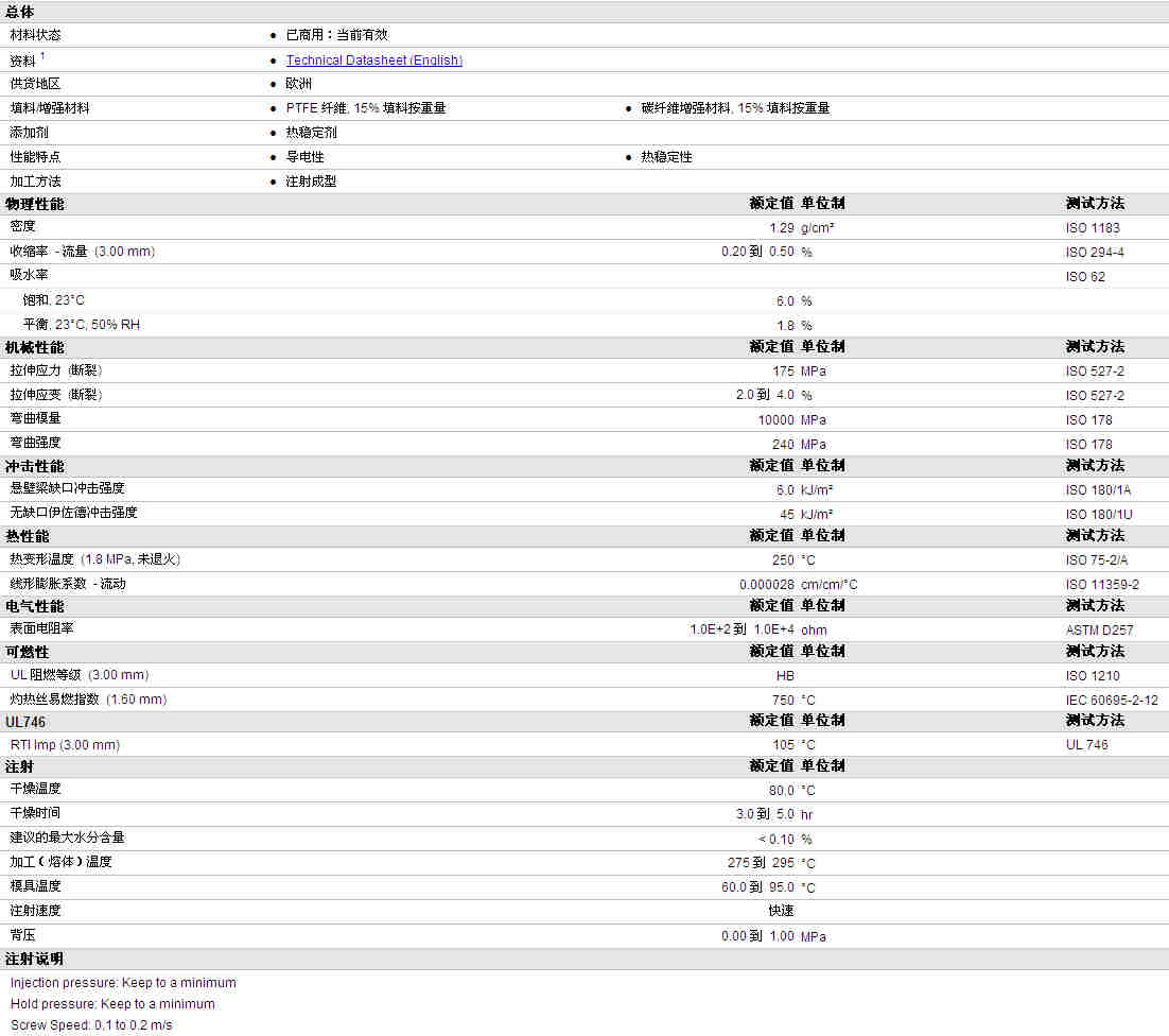 | 拉伸应力 (断裂) | 175 | MPa | ISO 527-2 |