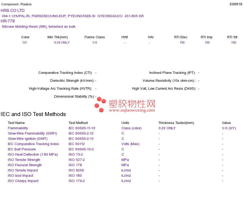 Silicone Molding Resin (SIR) HR-778UL黄卡资料请登陆会员后查看,如需电子档资料,请联系客服! 赵生:手机13424755533;QQ:27660005