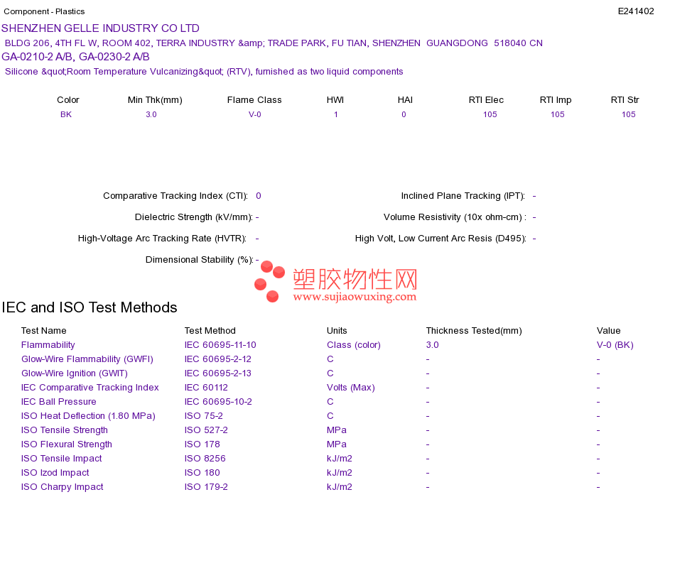 Silicone "Room Temperature Vulcanizing" (RTV) GA-0210-2 A/B, GA-0230-2 A/BUL黄卡资料请登陆会员后查看,如需电子档资料,请联系客服! 赵生:手机13424755533;QQ:27660005