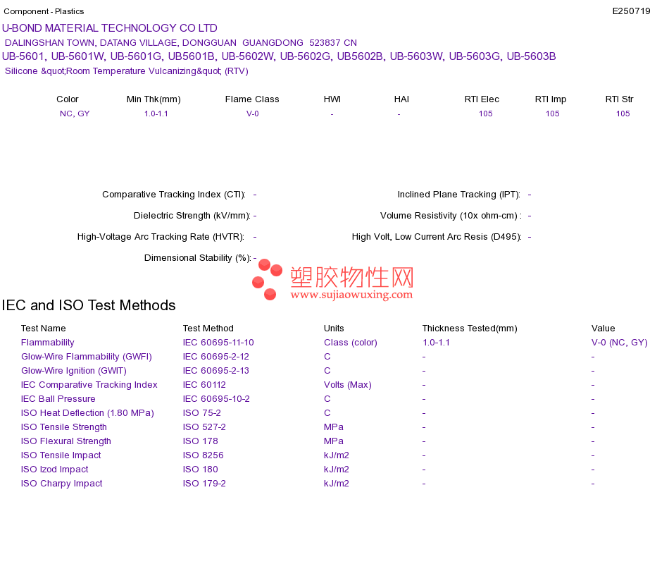 Silicone "Room Temperature Vulcanizing" (RTV) UB-5601, UB-5601W, UB-5601G, UB5601B, UB-5602W, UB-5602G, UB5602B, UB-5603W, UB-5603G, UB-5603BUL黄卡资料请登陆会员后查看,如需电子档资料,请联系客服! 赵生:手机13424755533;QQ:27660005