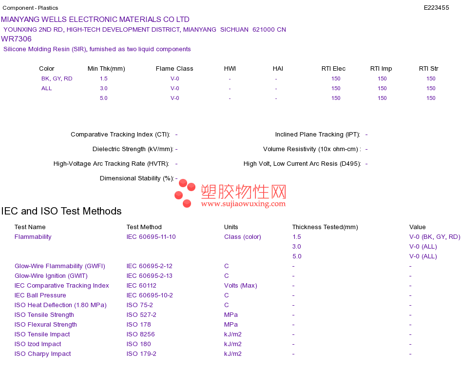 Silicone Molding Resin (SIR) WR7306UL黄卡资料请登陆会员后查看,如需电子档资料,请联系客服! 赵生:手机13424755533;QQ:27660005