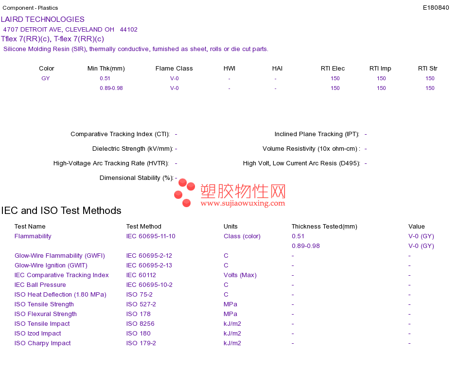 Silicone Molding Resin (SIR) Tflex 7(RR)(c), T-flex 7(RR)(c)UL黄卡资料请登陆会员后查看,如需电子档资料,请联系客服! 赵生:手机13424755533;QQ:27660005