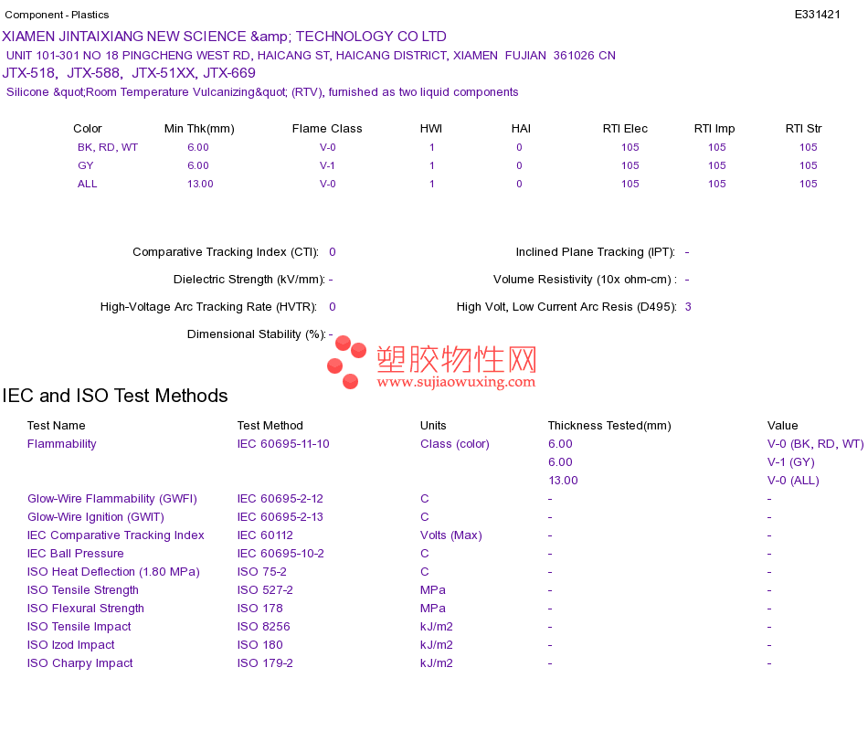 Silicone "Room Temperature Vulcanizing" (RTV) JTX-518, JTX-588, JTX-51XX, JTX-669UL黄卡资料请登陆会员后查看,如需电子档资料,请联系客服! 赵生:手机13424755533;QQ:27660005