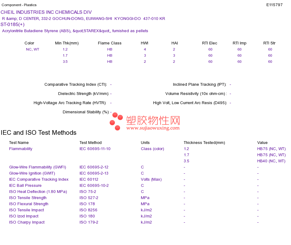 Acrylonitrile Butadiene Styrene (ABS) ST-0185(+)UL黄卡资料请登陆会员后查看,如需电子档资料,请联系客服! 赵生:手机13424755533;QQ:27660005