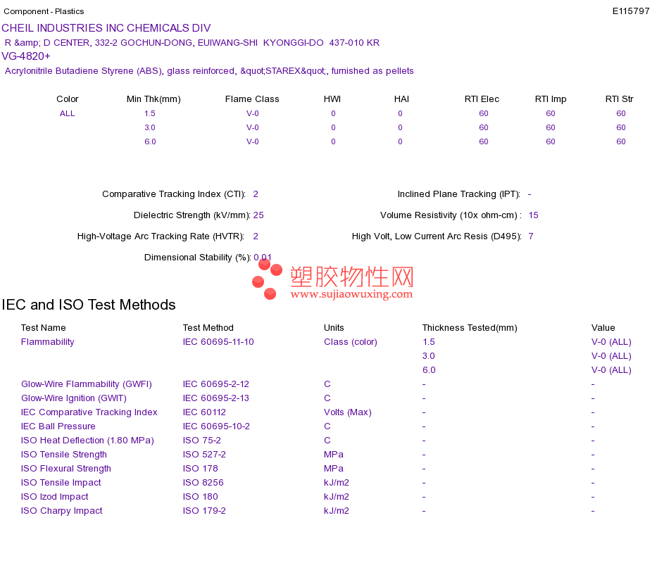 Acrylonitrile Butadiene Styrene (ABS) VG-4820+UL黄卡资料请登陆会员后查看,如需电子档资料,请联系客服! 赵生:手机13424755533;QQ:27660005