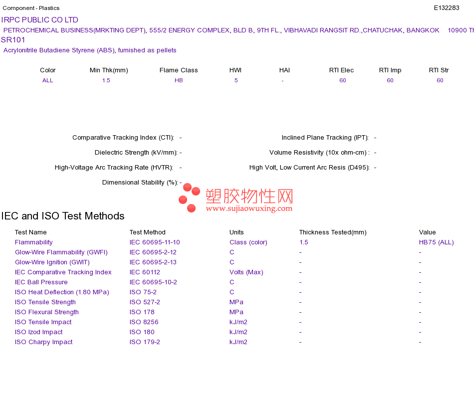 Acrylonitrile Butadiene Styrene (ABS) SR101UL黄卡资料请登陆会员后查看,如需电子档资料,请联系客服! 赵生:手机13424755533;QQ:27660005
