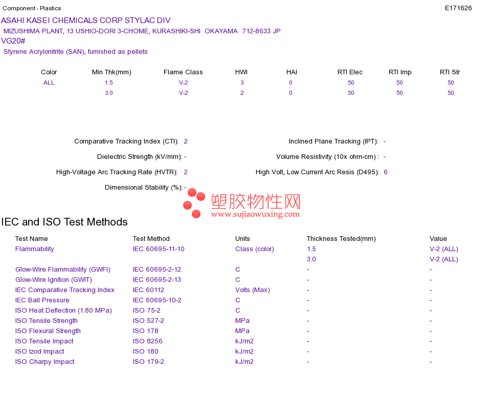 Styrene Acrylonitrite (SAN) VG20#UL黄卡资料请登陆会员后查看,如需电子档资料,请联系客服! 赵生:手机13424755533;QQ:27660005