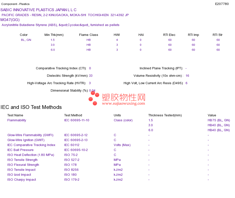 Acrylonitrile Butadiene Styrene (ABS) MG47(GG)UL黄卡资料请登陆会员后查看,如需电子档资料,请联系客服! 赵生:手机13424755533;QQ:27660005