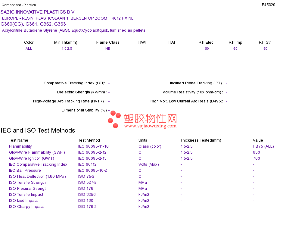 Acrylonitrile Butadiene Styrene (ABS) G360(GG), G361, G362, G363UL黄卡资料请登陆会员后查看,如需电子档资料,请联系客服! 赵生:手机13424755533;QQ:27660005