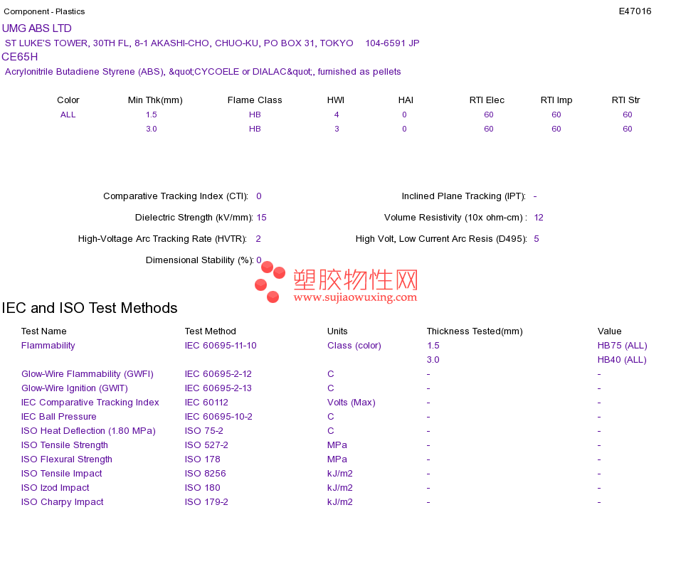 Acrylonitrile Butadiene Styrene (ABS) CE65HUL黄卡资料请登陆会员后查看,如需电子档资料,请联系客服! 赵生:手机13424755533;QQ:27660005