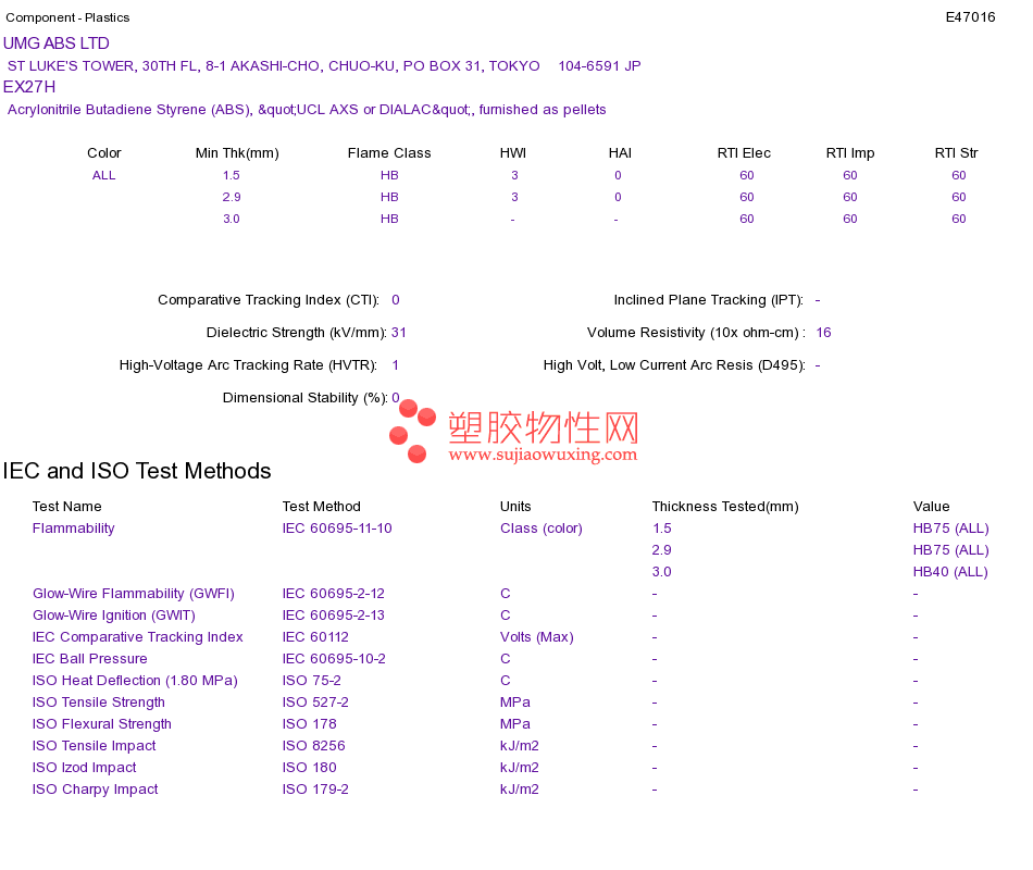 Acrylonitrile Butadiene Styrene (ABS) EX27HUL黄卡资料请登陆会员后查看,如需电子档资料,请联系客服! 赵生:手机13424755533;QQ:27660005