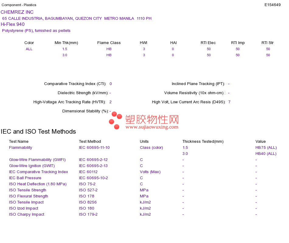 Polystyrene (PS) Hi-Flex 940UL黄卡资料请登陆会员后查看,如需电子档资料,请联系客服! 赵生:手机13424755533;QQ:27660005
