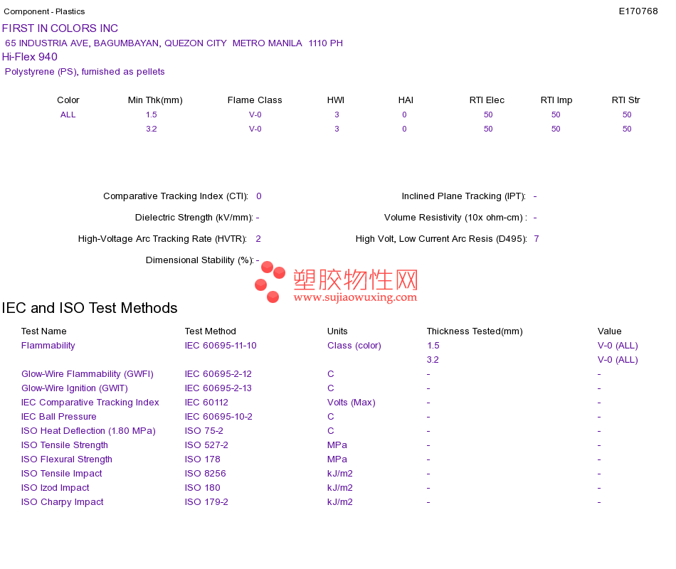 Polystyrene (PS) Hi-Flex 940 UL黄卡