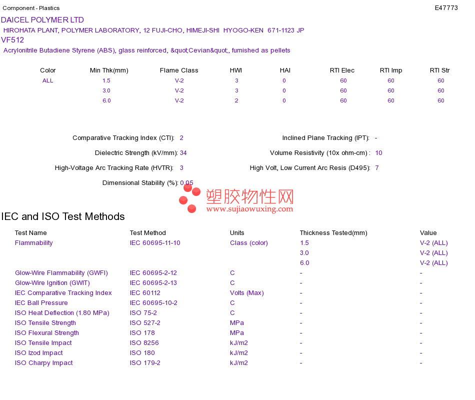 Acrylonitrile Butadiene Styrene (ABS) VF512UL黄卡资料请登陆会员后查看,如需电子档资料,请联系客服! 赵生:手机13424755533;QQ:27660005