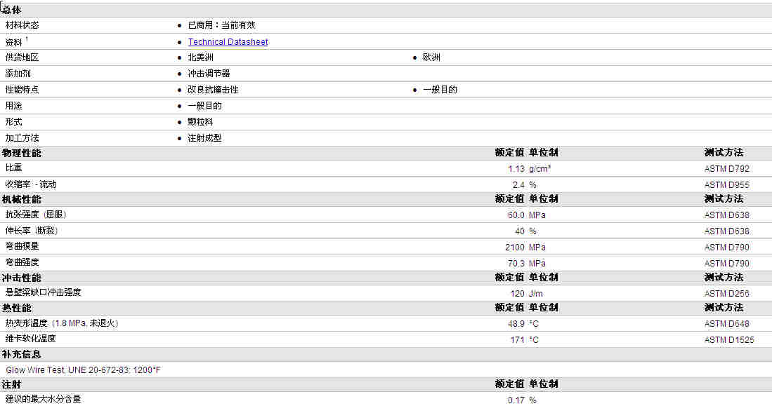 | 弯曲强度 | 70.3 | MPa | ASTM D790 |
