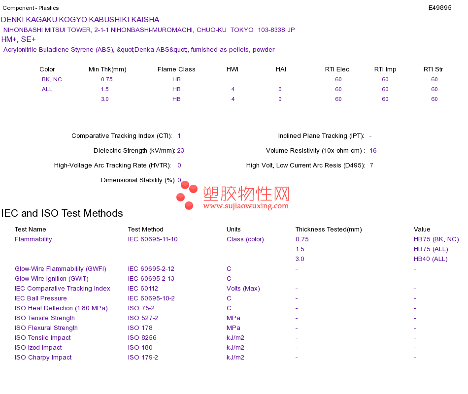 Acrylonitrile Butadiene Styrene (ABS) HM+, SE+UL黄卡资料请登陆会员后查看,如需电子档资料,请联系客服! 赵生:手机13424755533;QQ:27660005