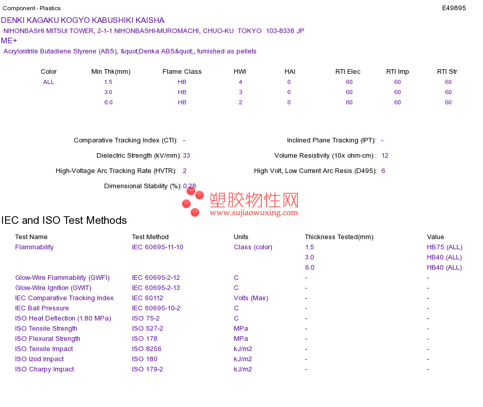 Acrylonitrile Butadiene Styrene (ABS) ME+UL黄卡资料请登陆会员后查看,如需电子档资料,请联系客服! 赵生:手机13424755533;QQ:27660005
