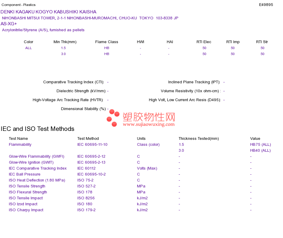 Acrylonitrile/Styrene (A/S) AS-XG+UL黄卡资料请登陆会员后查看,如需电子档资料,请联系客服! 赵生:手机13424755533;QQ:27660005