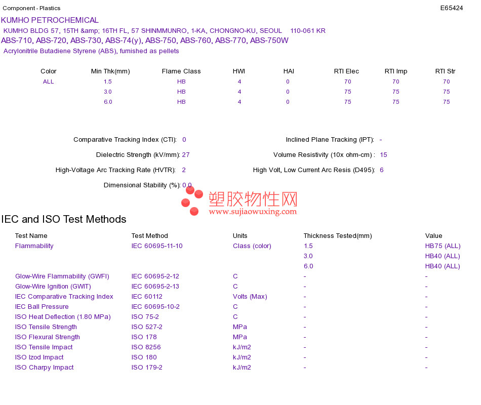 Acrylonitrile Butadiene Styrene (ABS) ABS-710, ABS-720, ABS-730, ABS-74(y), ABS-750, ABS-760, ABS-770, ABS-750WUL黄卡资料请登陆会员后查看,如需电子档资料,请联系客服! 赵生:手机13424755533;QQ:27660005