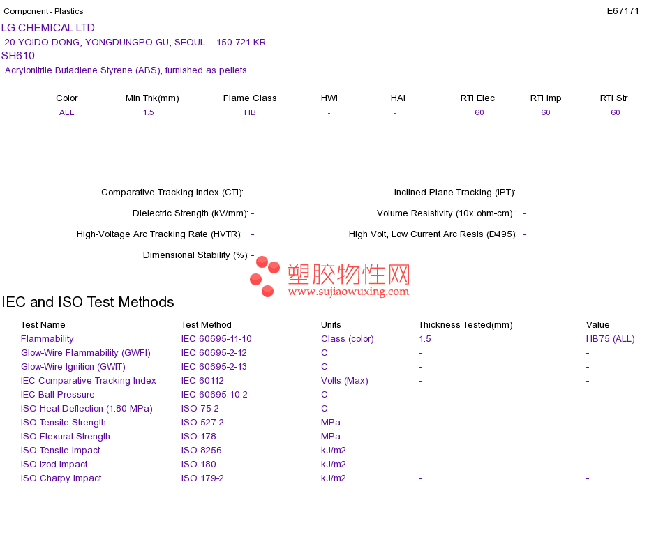 Acrylonitrile Butadiene Styrene (ABS) SH610UL黄卡资料请登陆会员后查看,如需电子档资料,请联系客服! 赵生:手机13424755533;QQ:27660005
