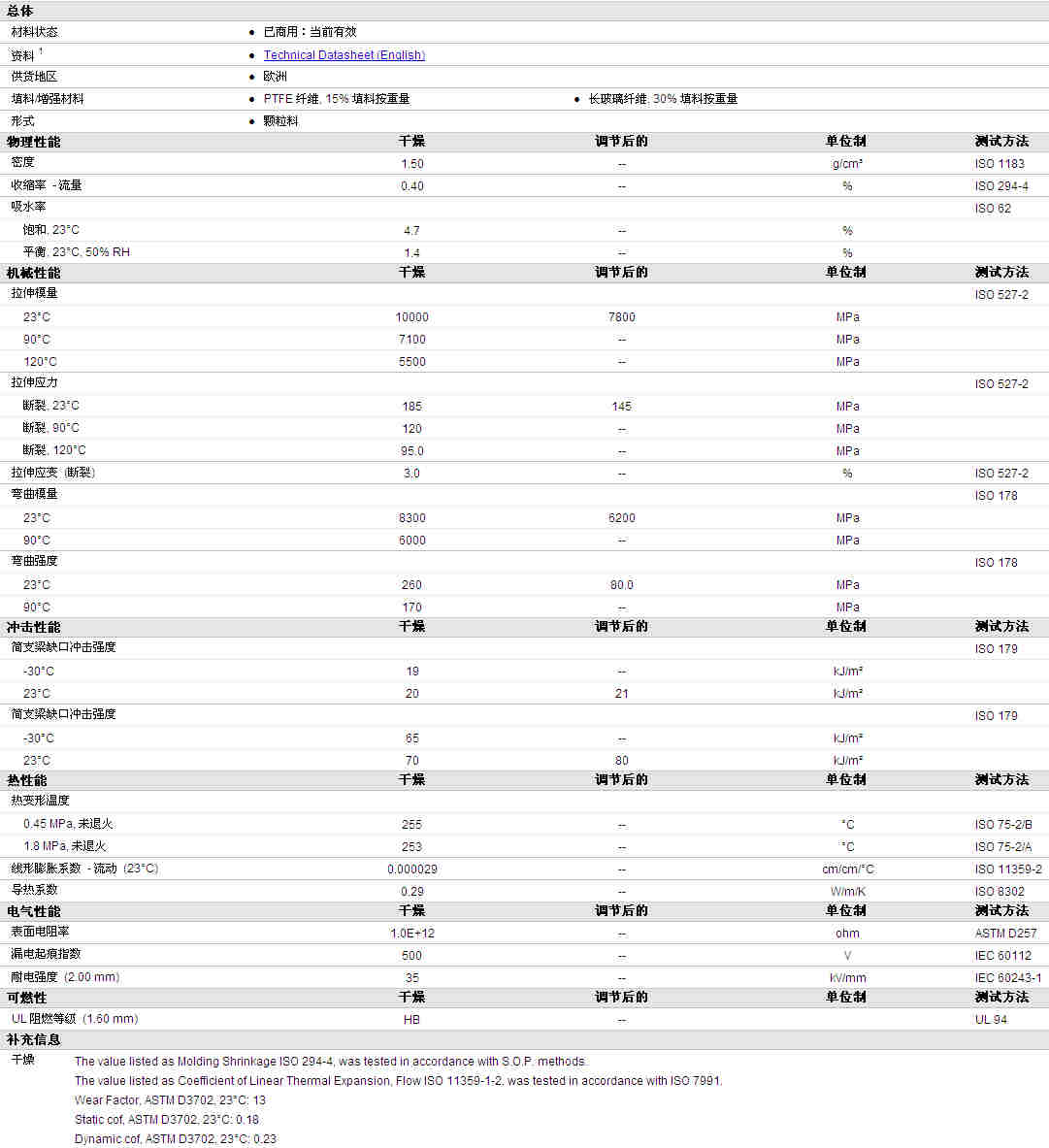 | 密度 | 1.50 | -- | g/cm³ | ISO 1183 |
